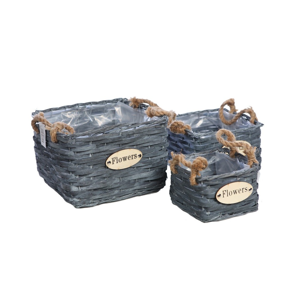SET 3 CESTAS GRISES FLOWER 20CM