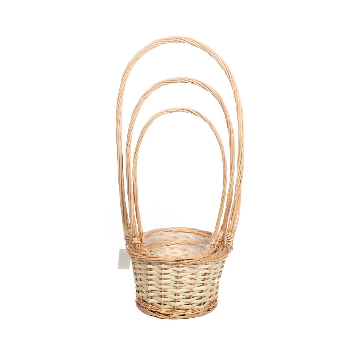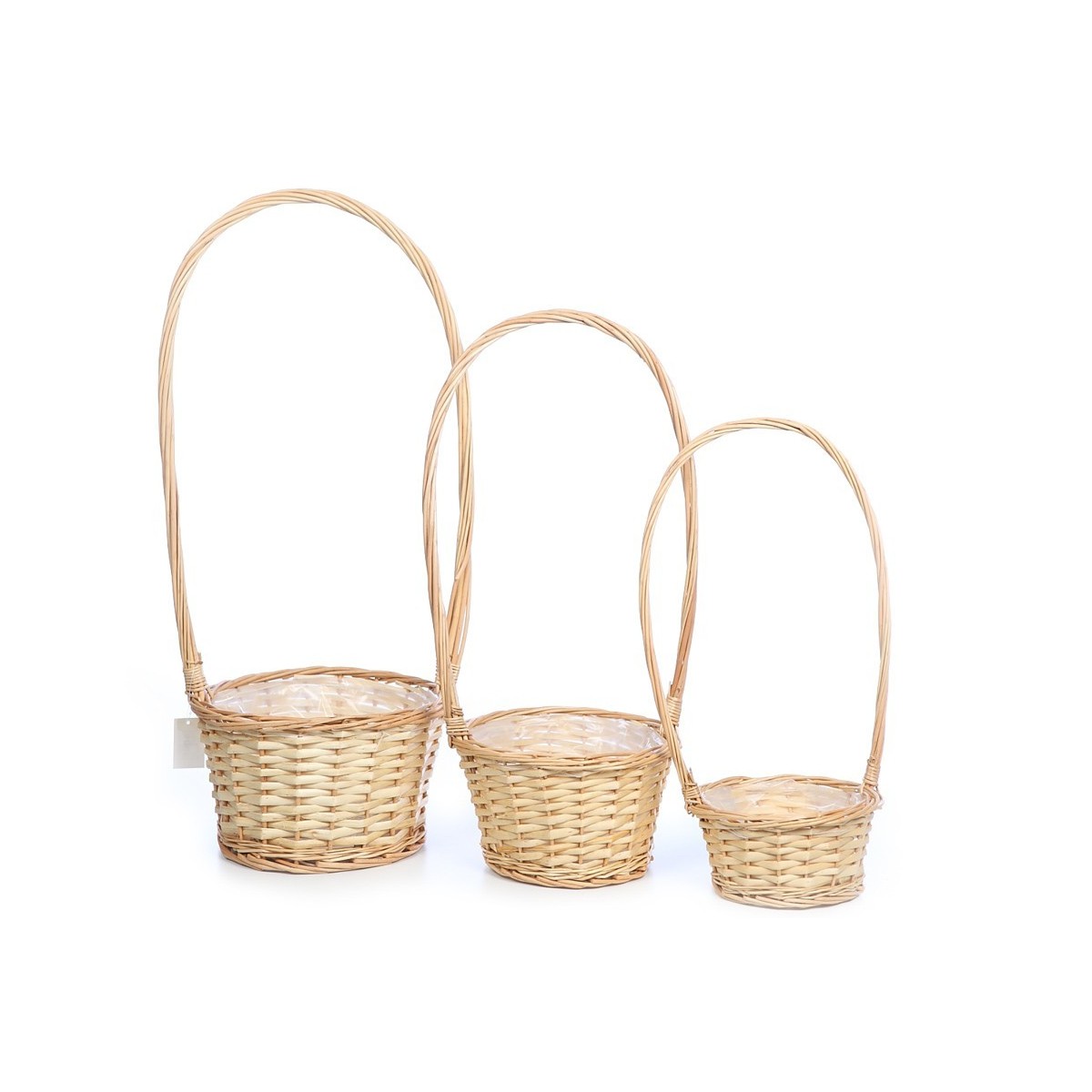 SET 3 CESTAS REDONDAS CON ASA, PLASTICO INTERIOR