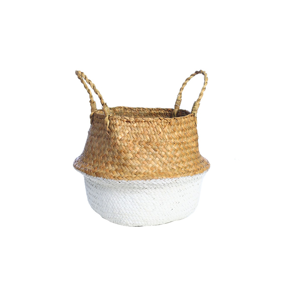 ubremacetas con asas confeccionado con hojas de palmera trenzadas.