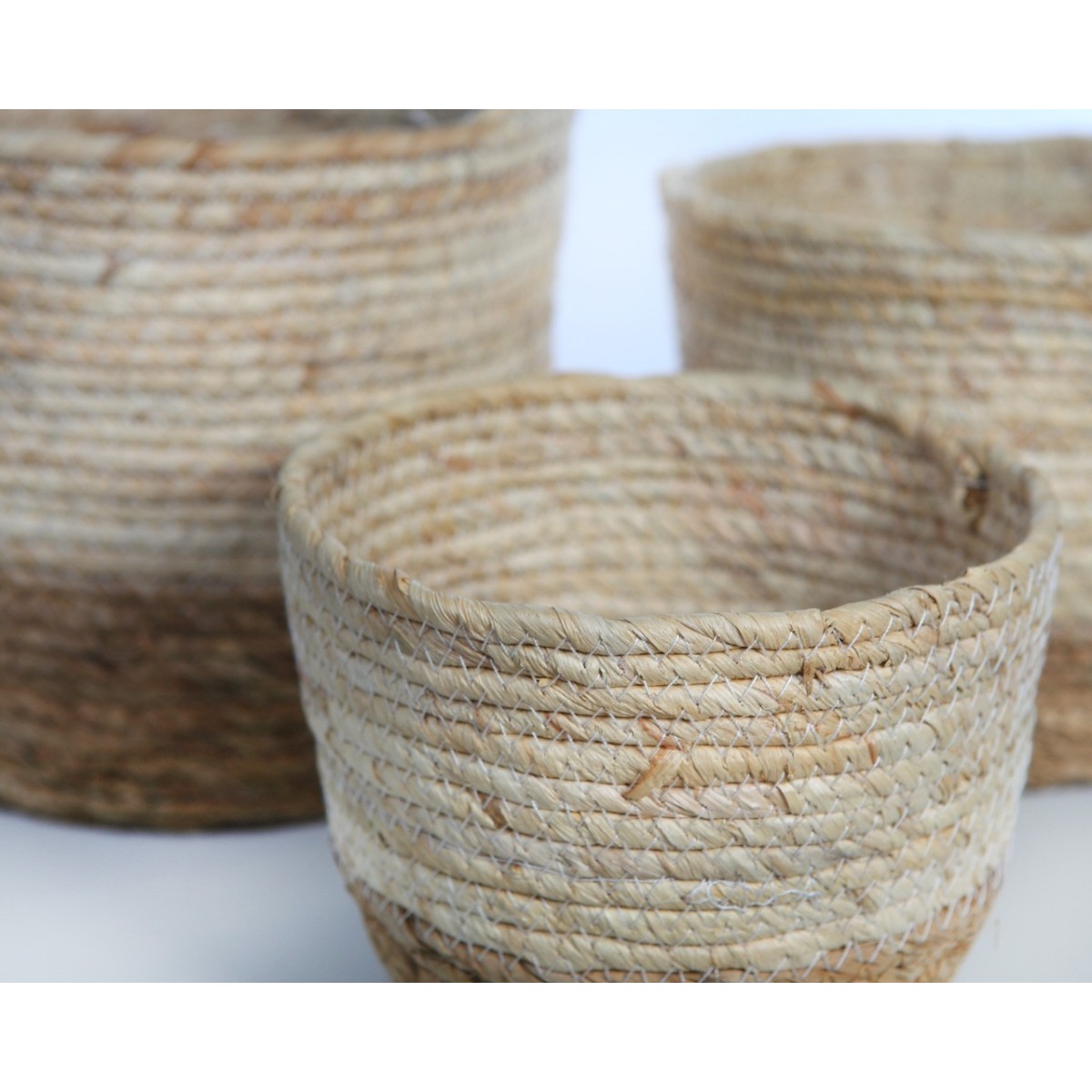 Conjunto de 3 maceteros de yute.