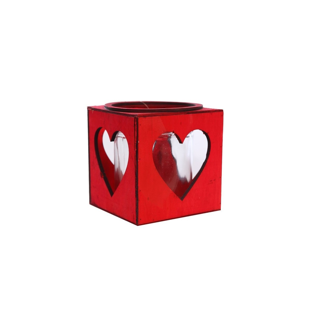 CAJA ROJA MADERA CRISTAL 15CM