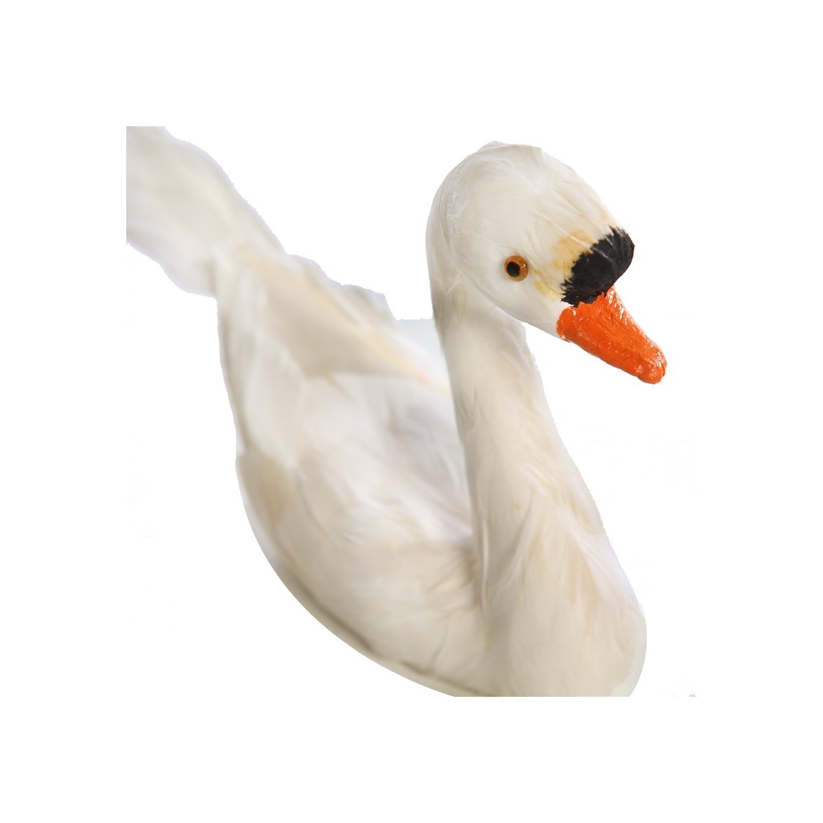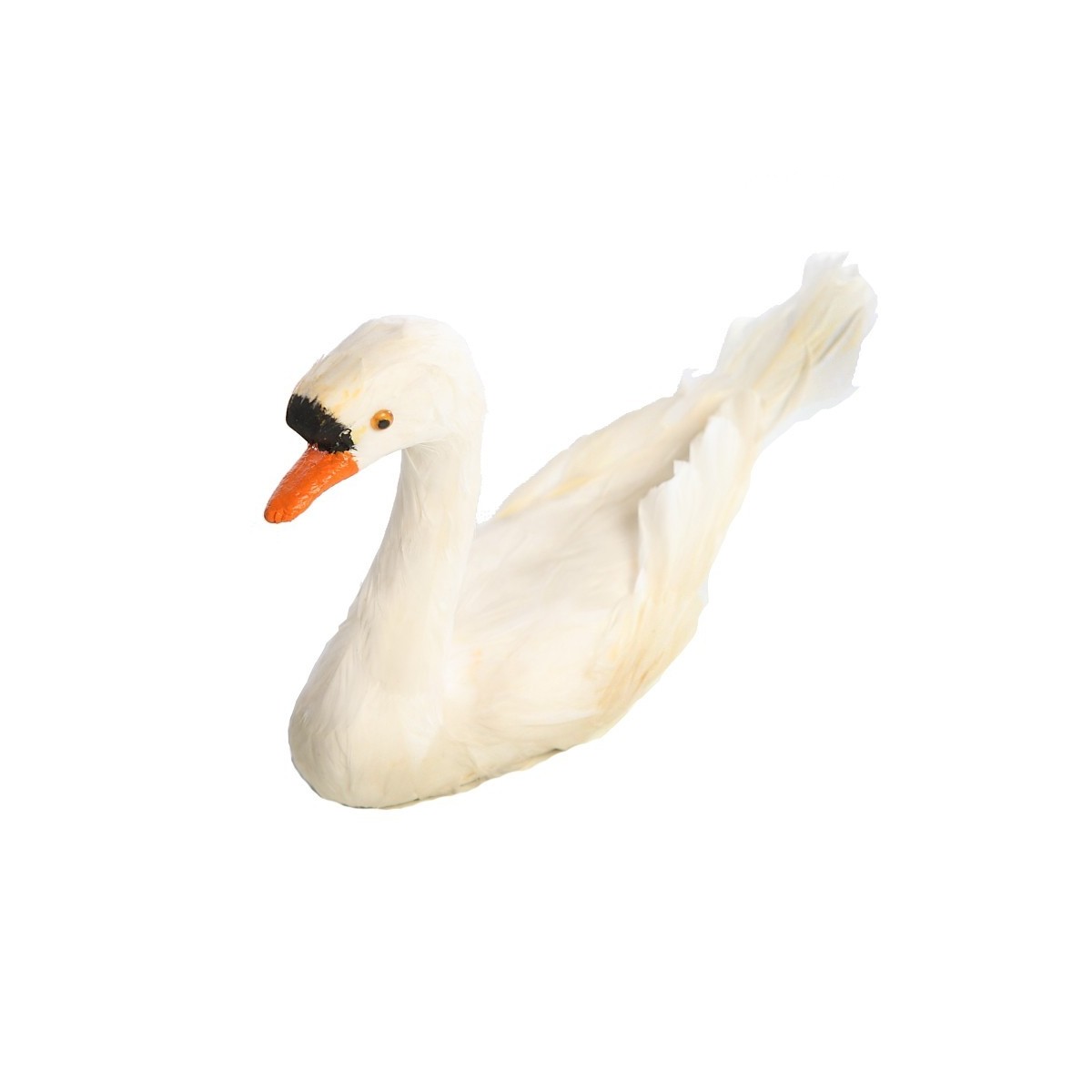 Cisne de material sintético con plumas natural, de 24 cms. de largo y 8 cms. de alto.