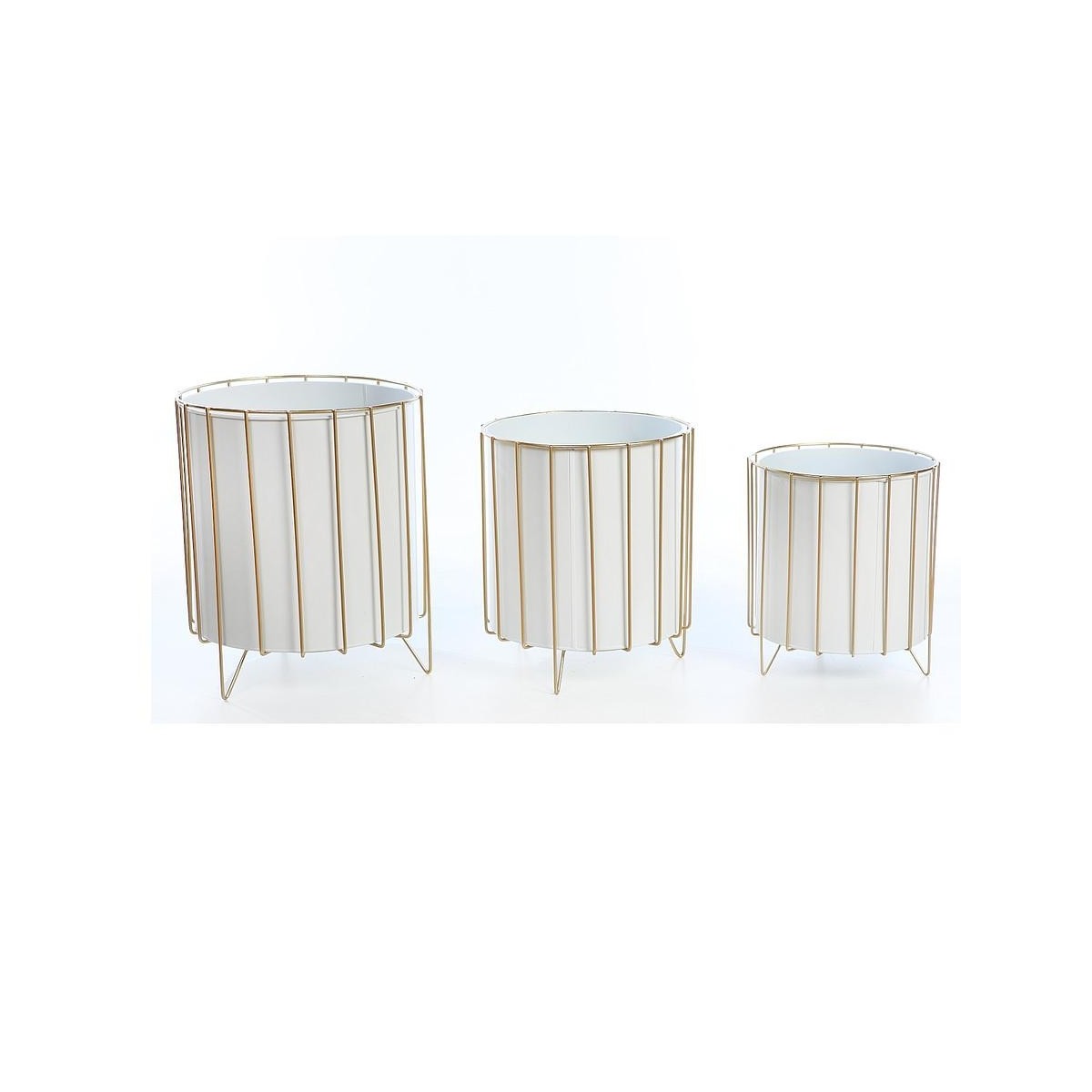 SET 3 MACETEROS PIE METAL DORADO 33CM