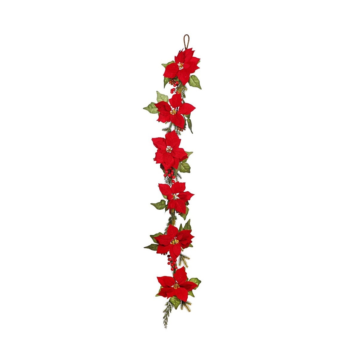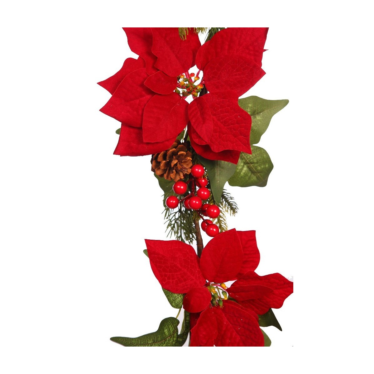 GUIRNALDA DE POINSETTIA BERRY Y PIÑAS 140CM