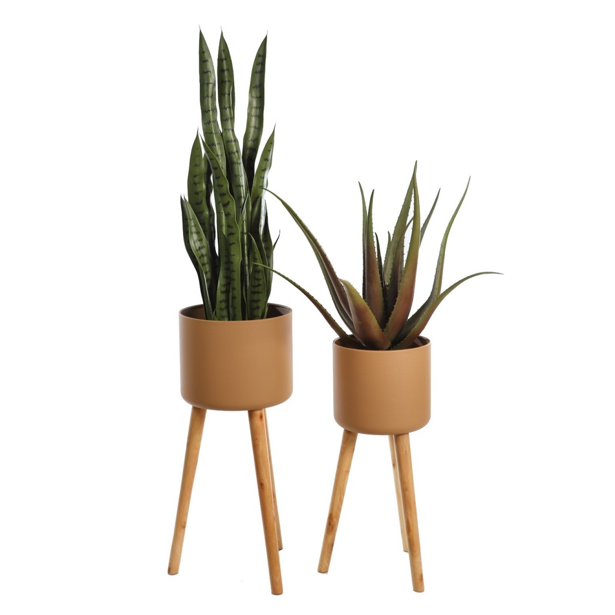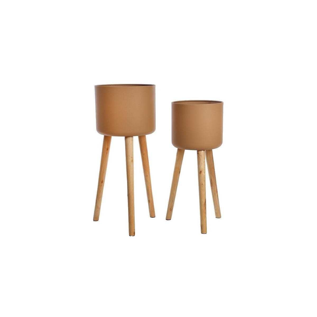 SET 2 MACETEROS MADERA Y ZINC 66CM