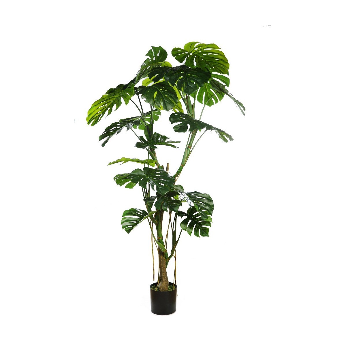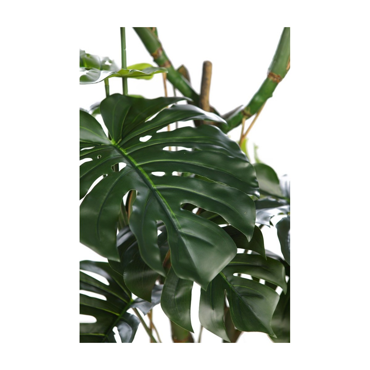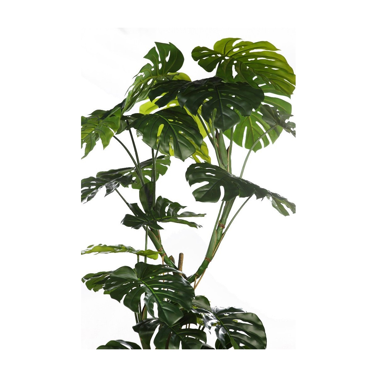 Planta artificial Monstera de gran realismo, con hojas anchas y verdes que aportan frescura y estilo a cualquier espacio.