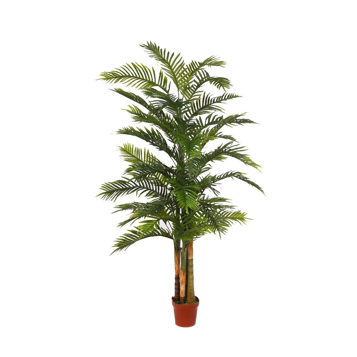 Esta palmera artificial de 205 cm de altura es una réplica exacta de una palmera de interior. Tanto el tallo como hojas tienen un acabado impecable y no dejan lugar a la duda tanto en su aspecto visual como al tacto. Fabricada con materiales de alta calidad, Esta palmera artificial de 205 cm es imprescindible para el hogar, aunque también dará un toque natural a oficinas, restaurantes y negocios.