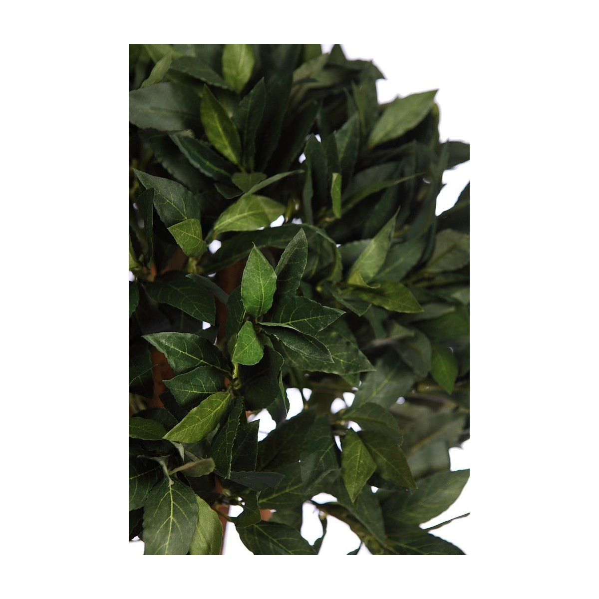 Árbol bola de laurel con su peculiar forma de hoja y sus tonos verdes de un gran realismo, que muestra la calidad de fabricación y su esmero en los detalles.