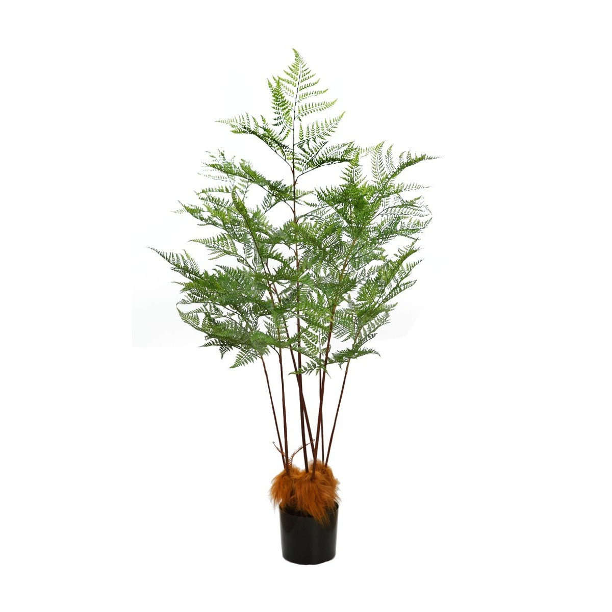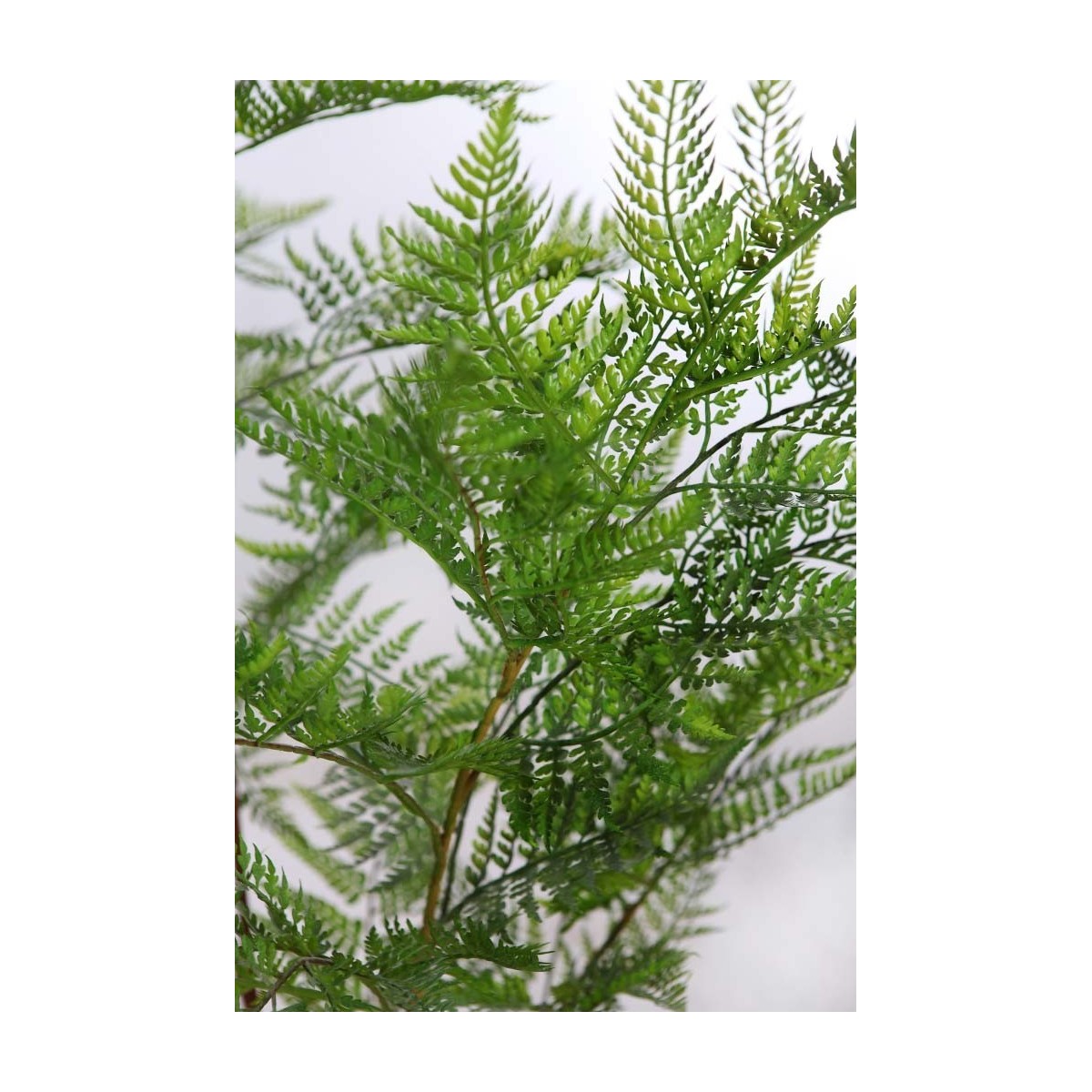 Helecho artificial de porte alto con fronda ligera y base con efecto natural de fibra. Su diseño frondoso y aire silvestre aporta frescura y textura a cualquier rincón. Ideal para ambientes tropicales, rústicos o estilo botánico moderno sin mantenimiento.