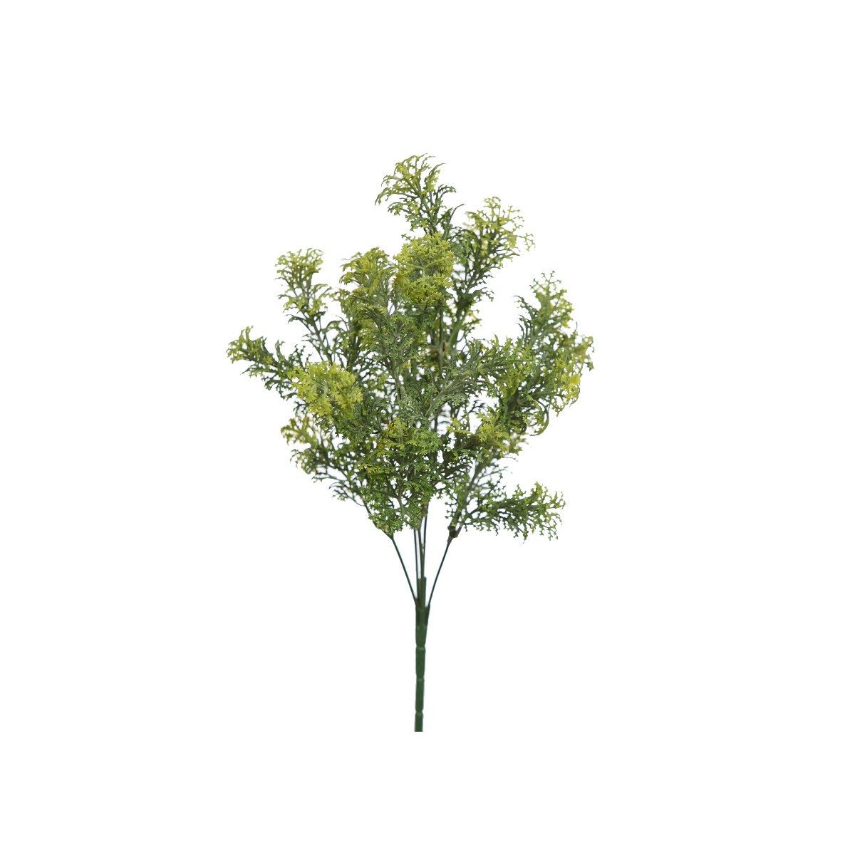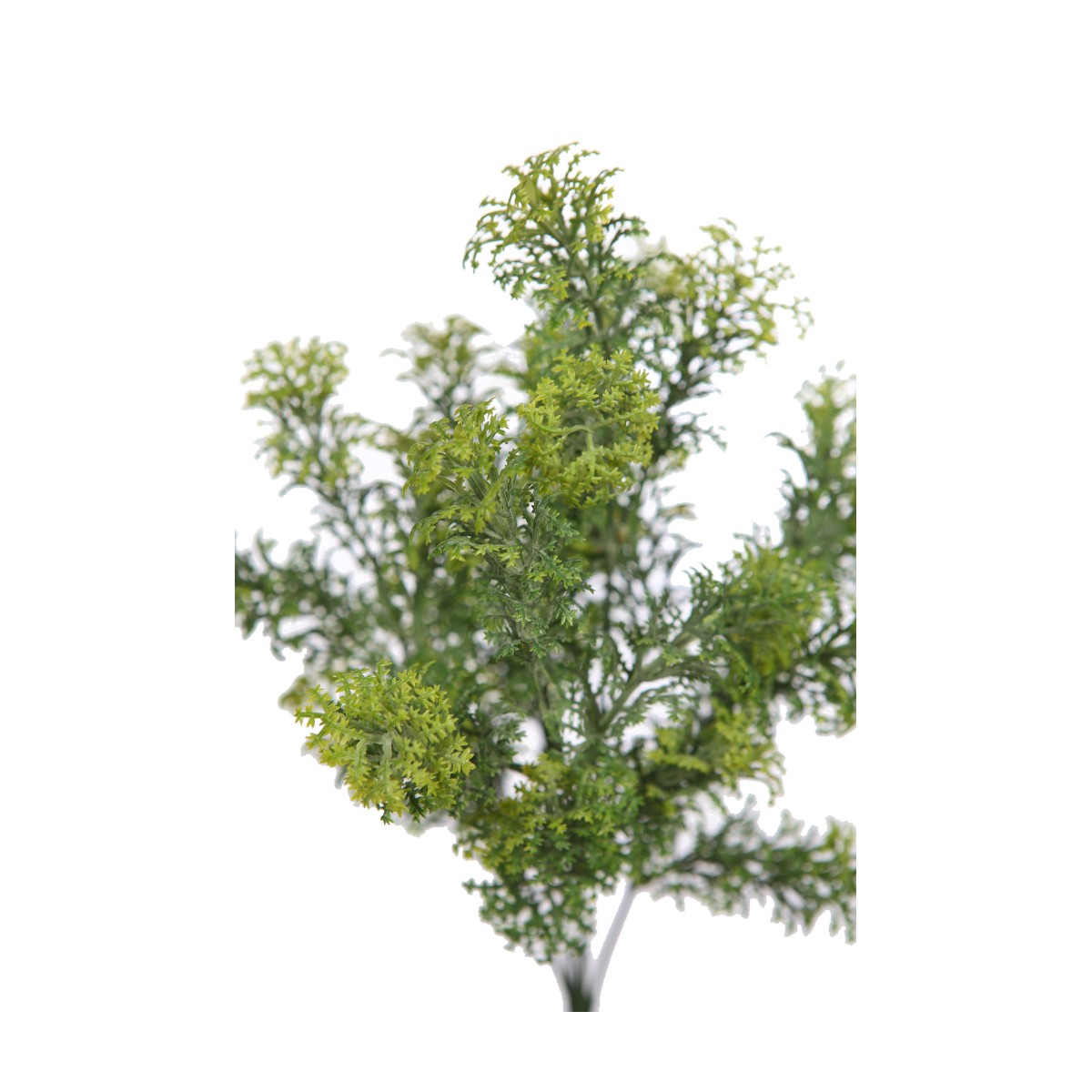 Rama artificial decorativa con follaje fino y ligero en tonos verdes matizados.