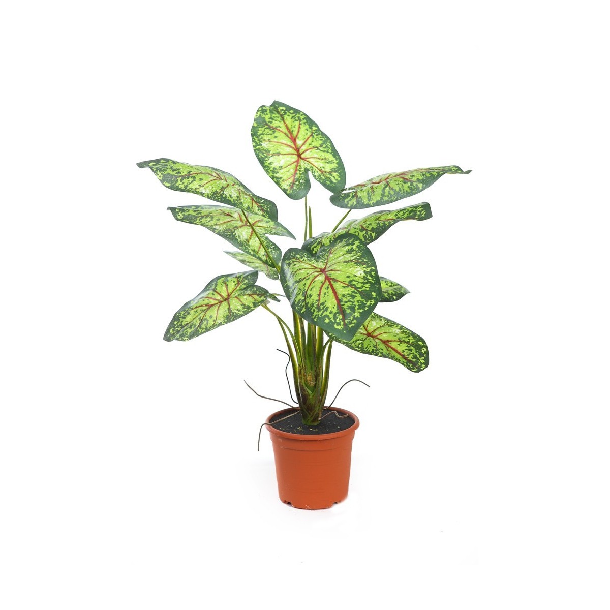 Planta caladium artificial de buena calidad, con maceta incluida.