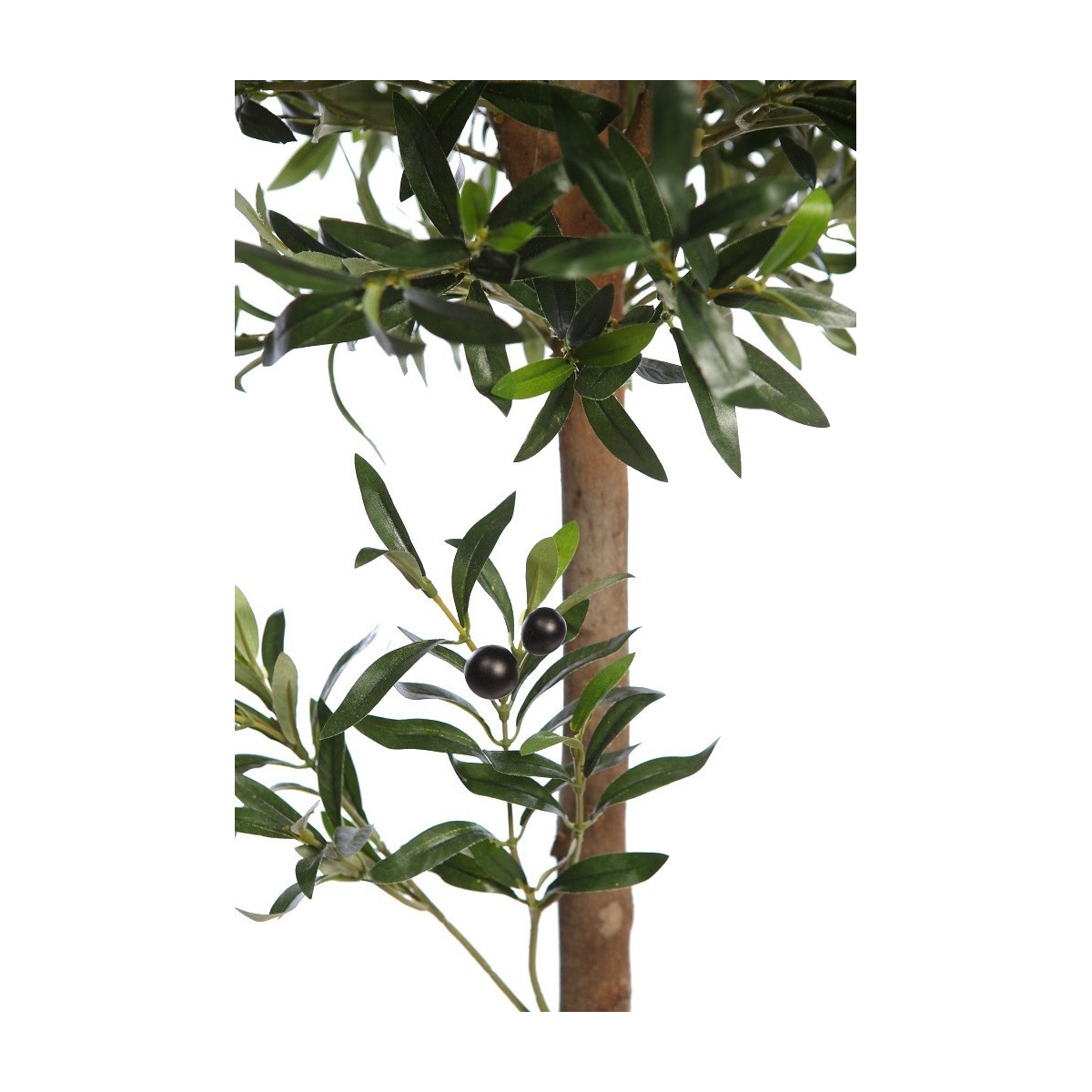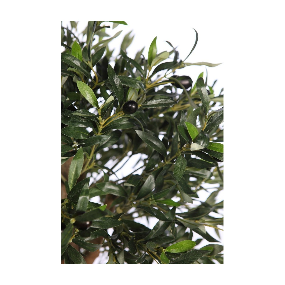 Arbol de olivo artificial de bella manufactura, con una detallada recreación de las hojas aovadas con sus tonos verdes.