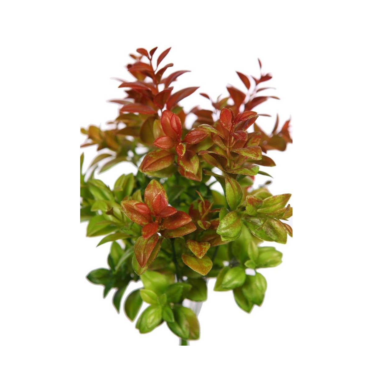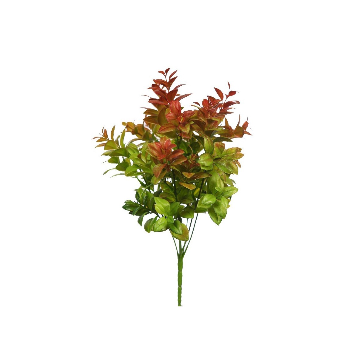 Elegante planta de Eucalipto, de hoja verde brillante con bellos matices granates, que le aportan un extraordinario realismo.