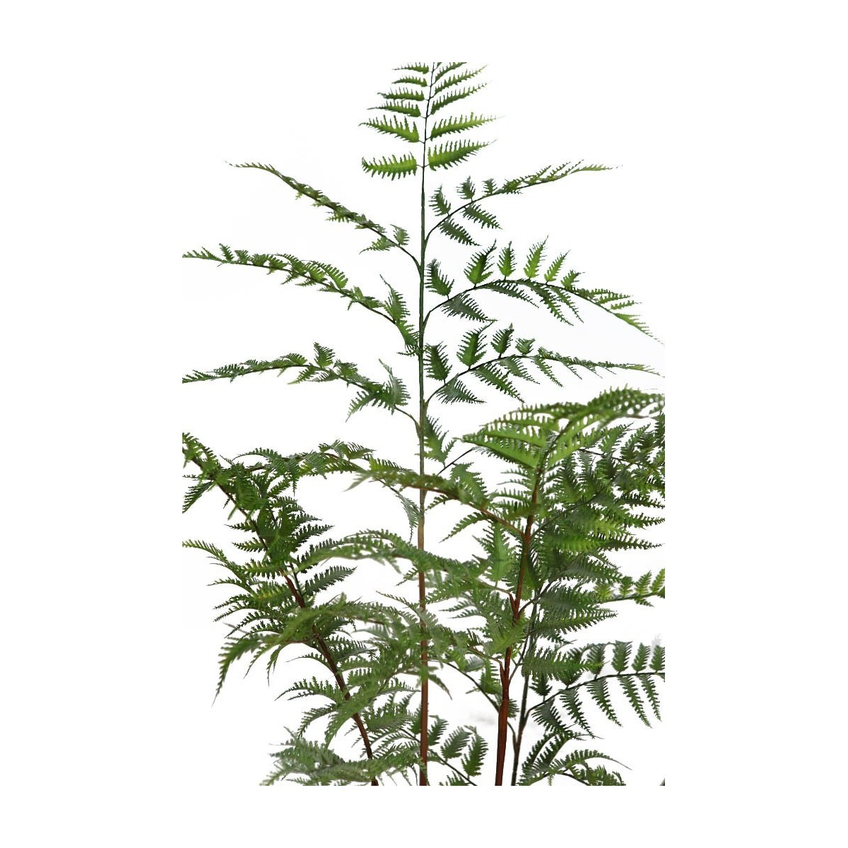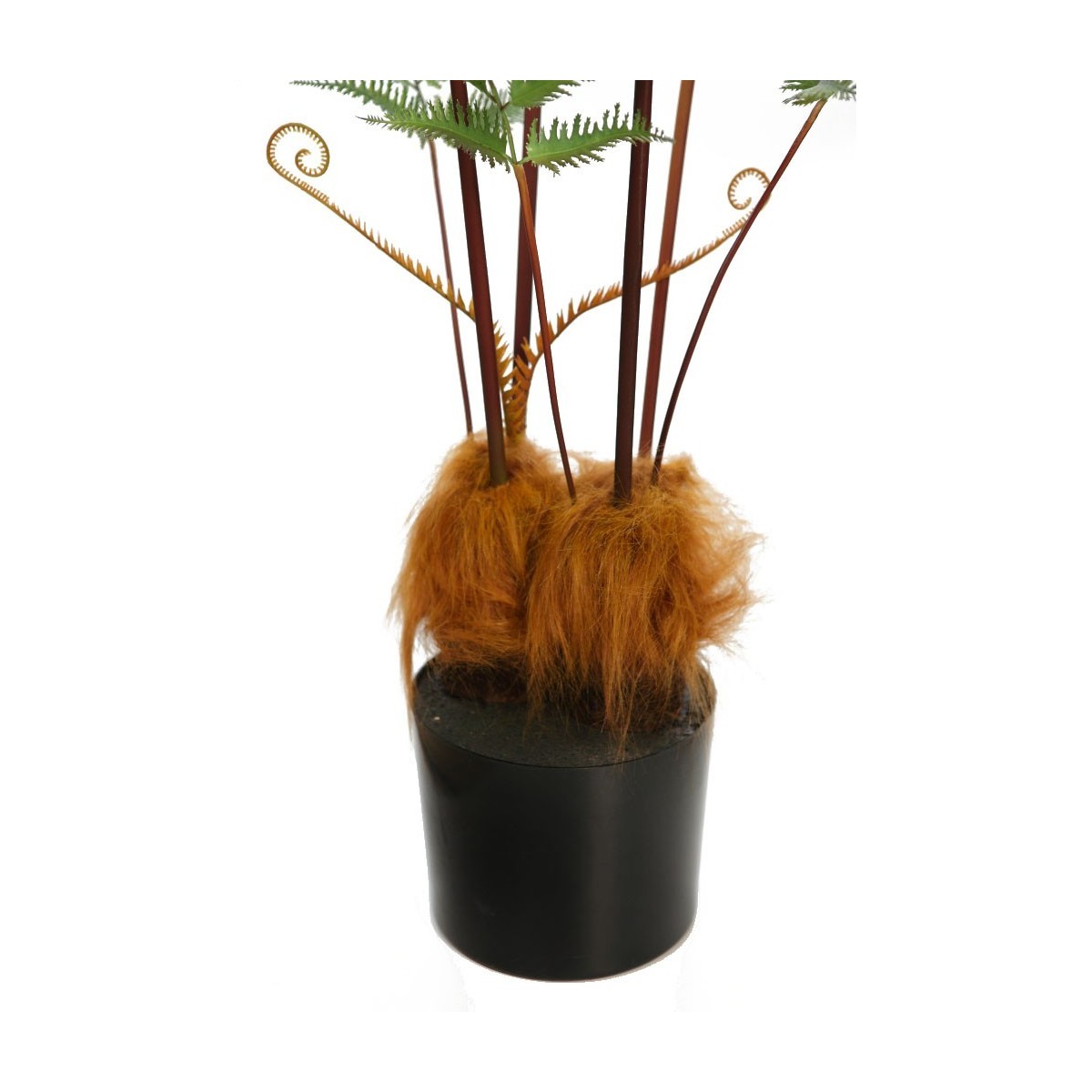 Helecho artificial con frondas estilizadas y detalles rizados que aportan realismo y movimiento. Su base con textura de fibra simula el aspecto natural del rizoma, ideal para decoraciones exóticas o interiores verdes. Aporta altura, ligereza y elegancia sin mantenimiento.