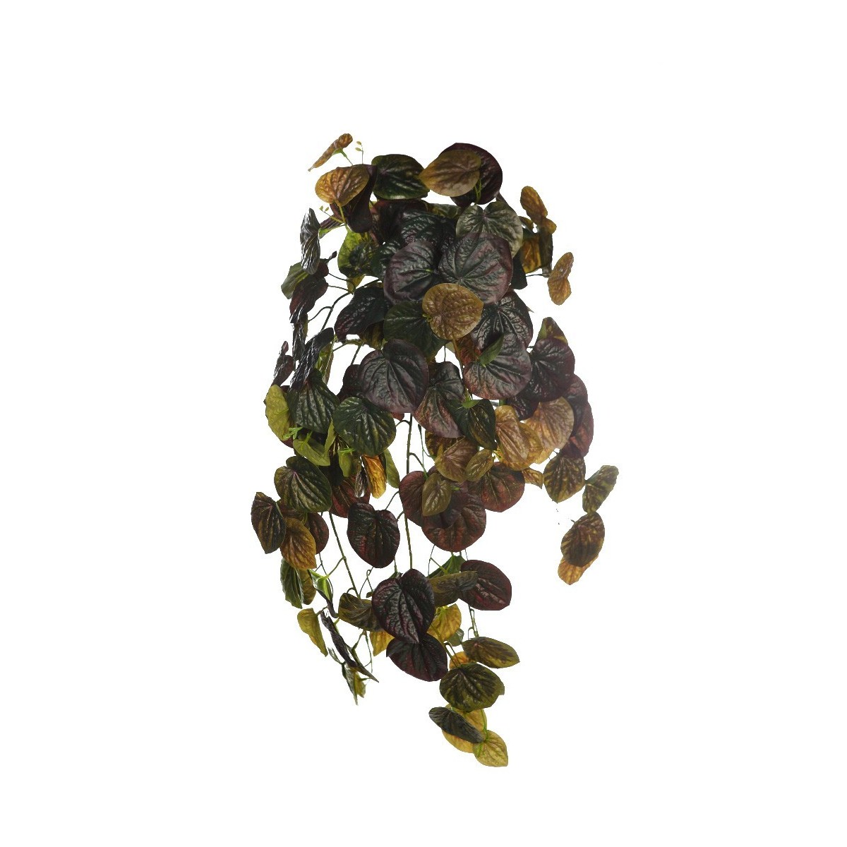 Planta artificial colgante con hojas en tonos ocres que imitan a la perfección la peperomia.