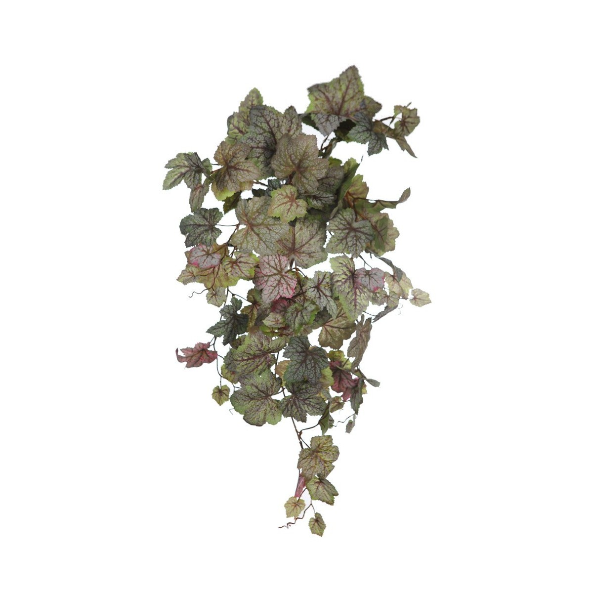 Añade un toque natural sin complicaciones con esta planta artificial colgante de hojas verdes con vetas rojizas. Su diseño realista y acabado detallado la hacen ideal para decorar estanterías, maceteros altos o rincones interiores. No necesita mantenimiento, perfecta para cualquier espacio del hogar u oficina.