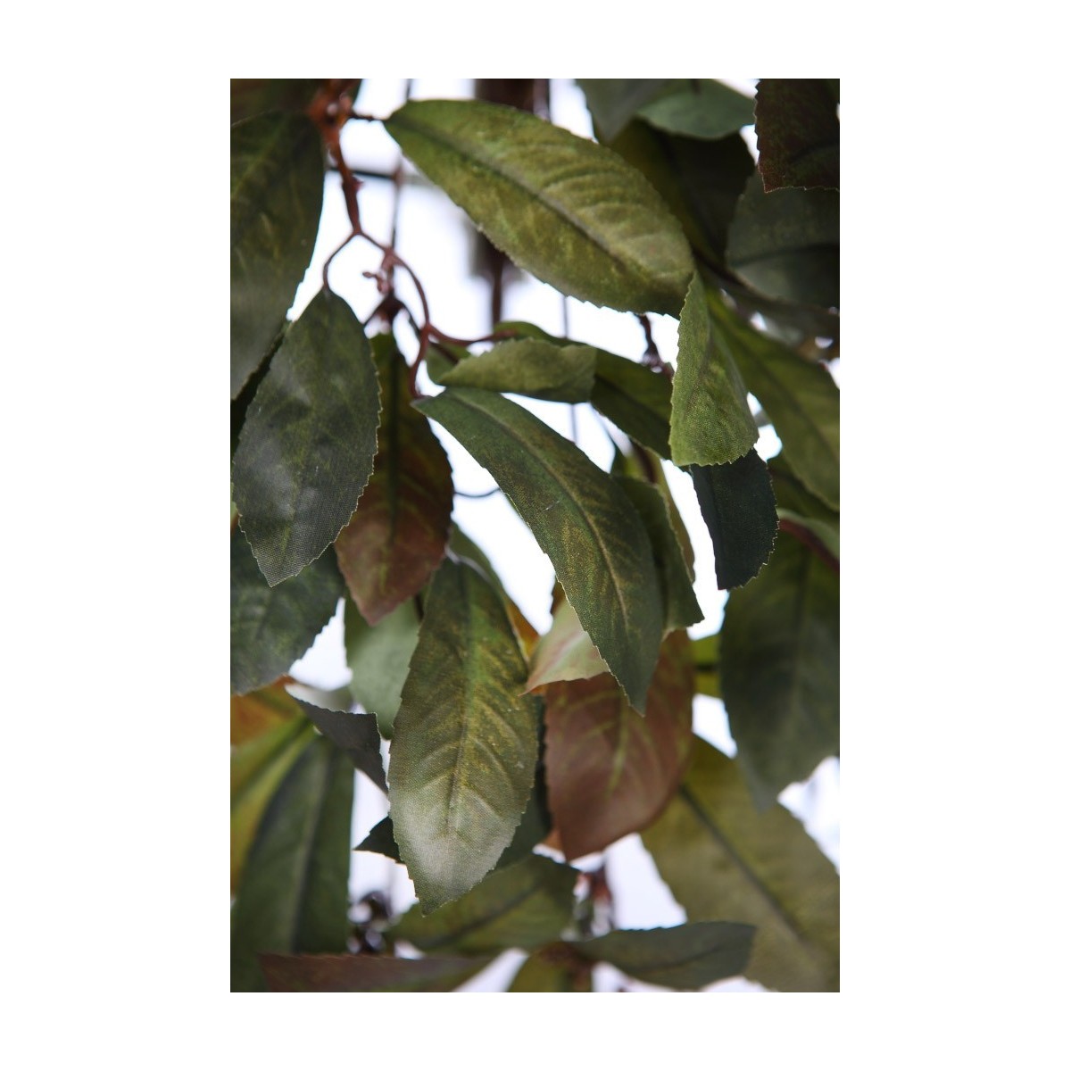 Esta planta artificial colgante presenta hojas alargadas en tonos verdes con sutiles matices rojizos, logrando un efecto natural y elegante. Incluye pequeños racimos decorativos que realzan su realismo. Ideal para dar frescura y vida a cualquier espacio interior sin mantenimiento.