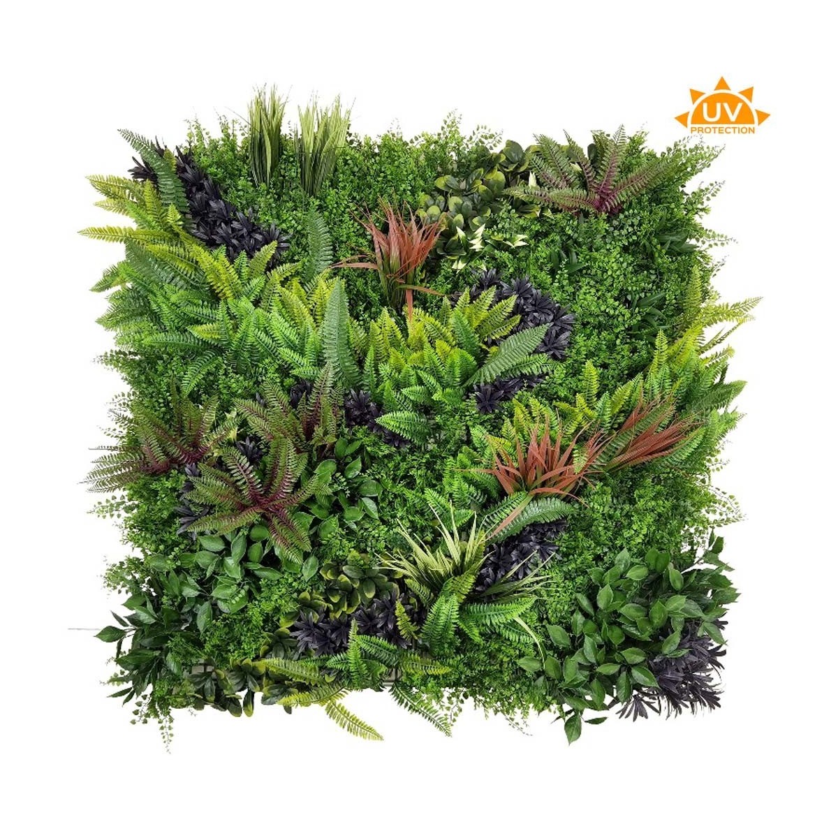 Decoración vertical de plantas artificiales.