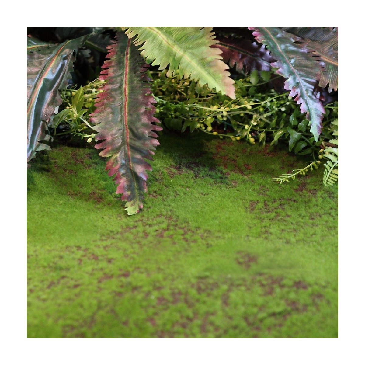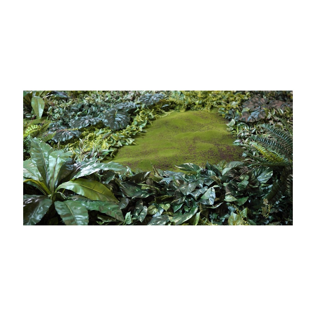 Se componen de plantas de gran volumen y en la composición añadimos claros de musgo sintético para dar más realismo al conjunto.