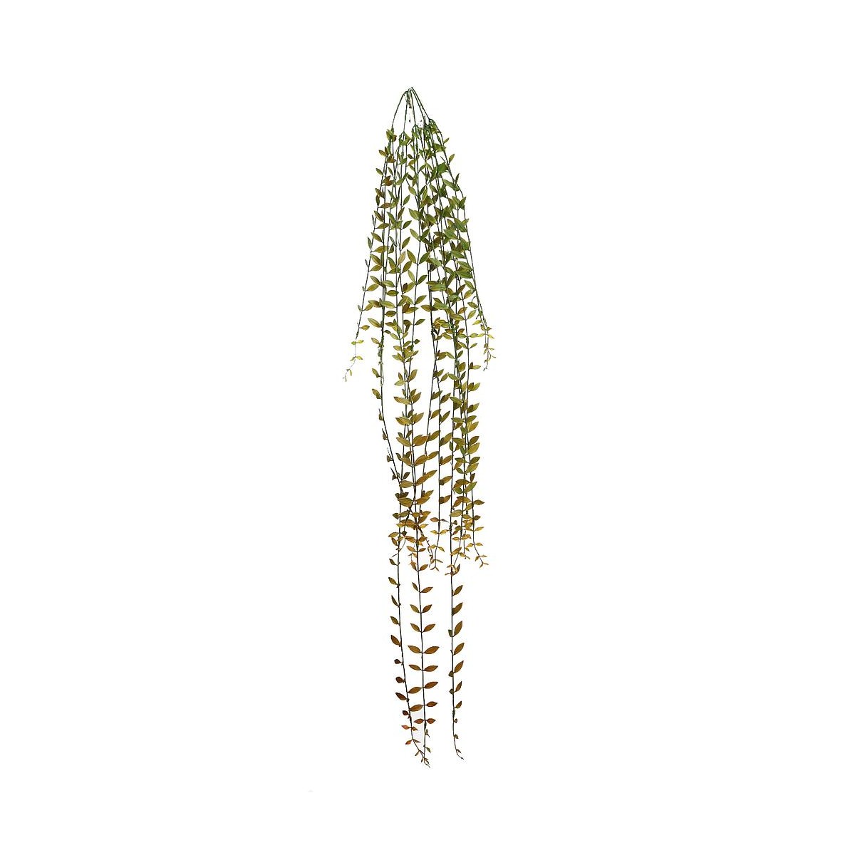 Planta artificial colgante de líneas largas y estilizadas, con delicadas hojas que caen en forma de cascada.