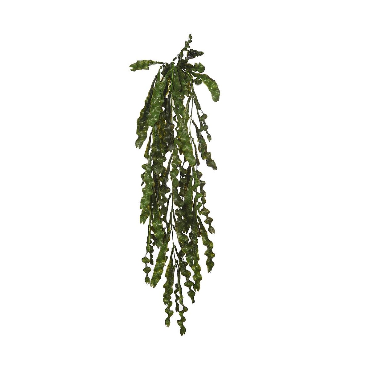 Planta artificial colgante con hojas onduladas y textura orgánica, ideal para aportar un toque natural y original.