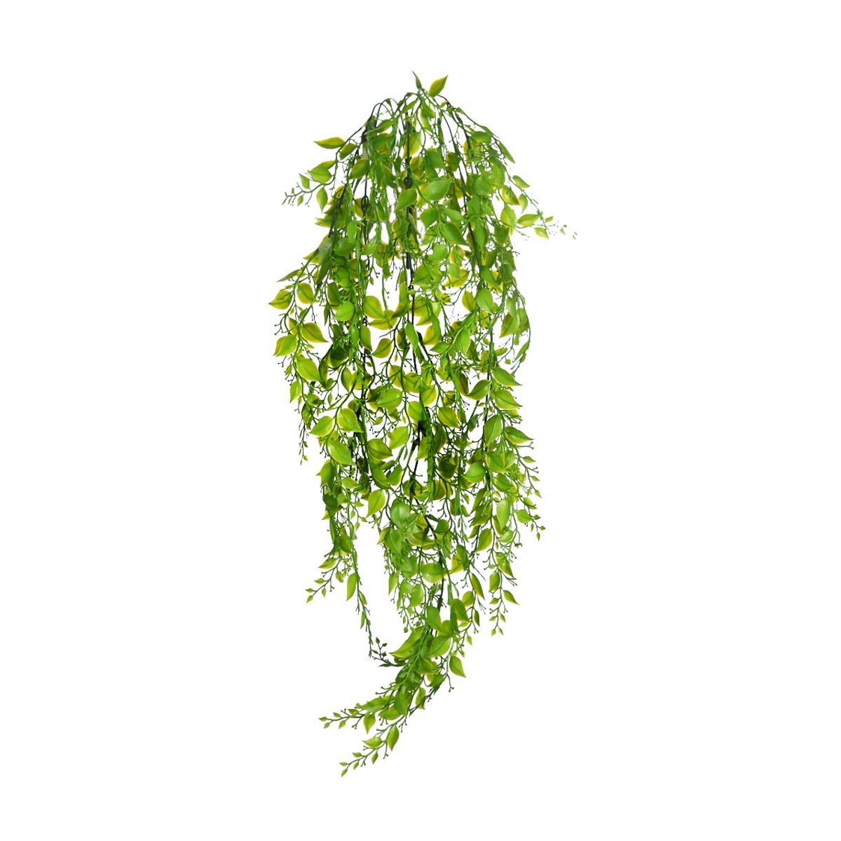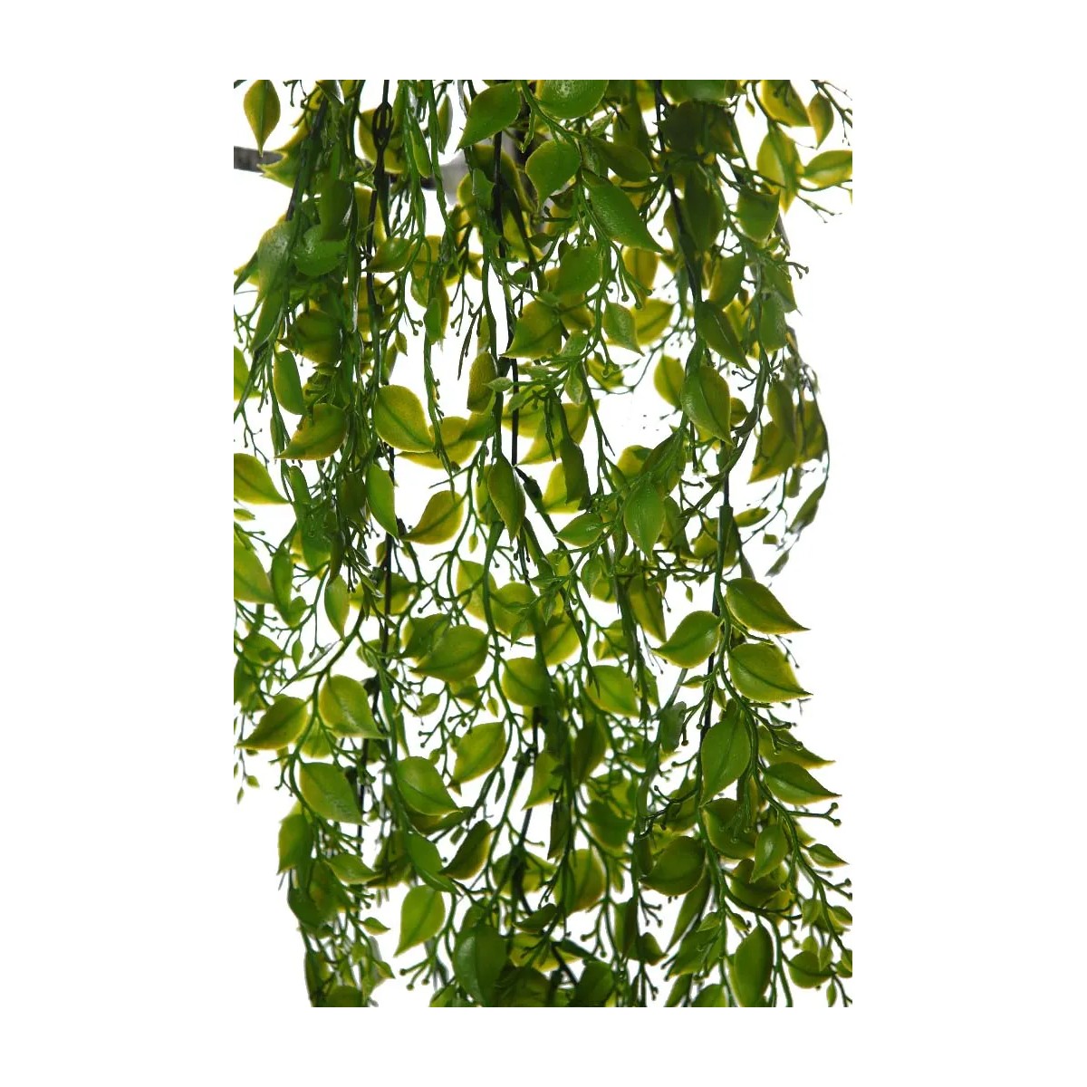 Planta artificial colgante con hojas redondeadas en tonos verdes luminosos que aportan frescura y naturalidad.