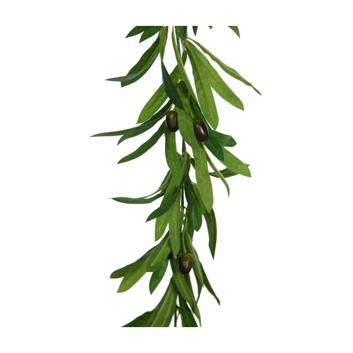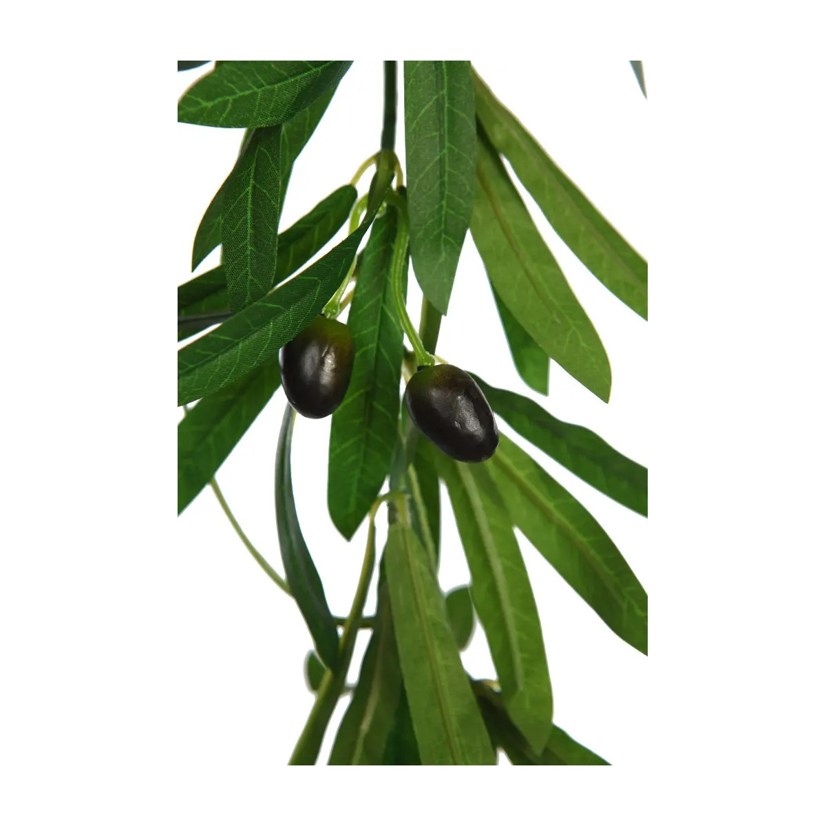 Rama artificial de olivo con hojas alargadas en verde natural y detalles de aceitunas realistas.