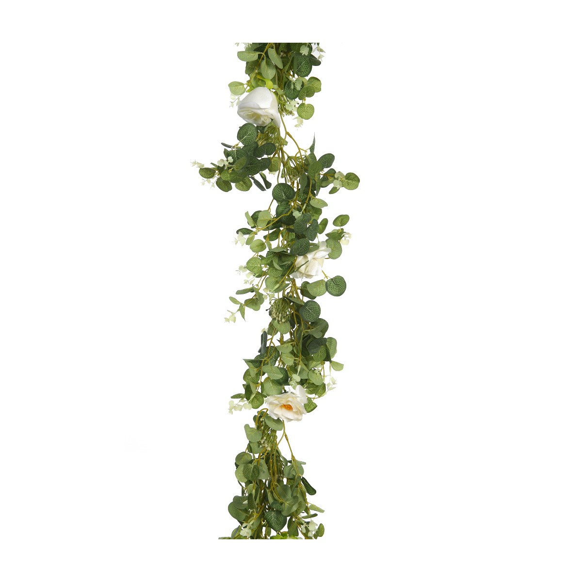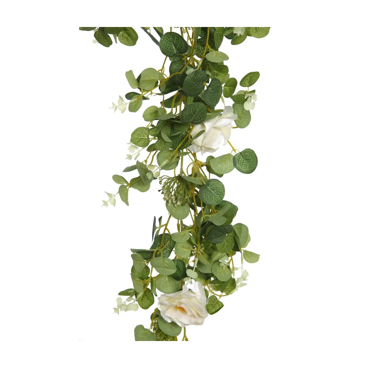 GUIRNLADA EUCALIPTO Y ROSA ARTIFICIAL 180CM
