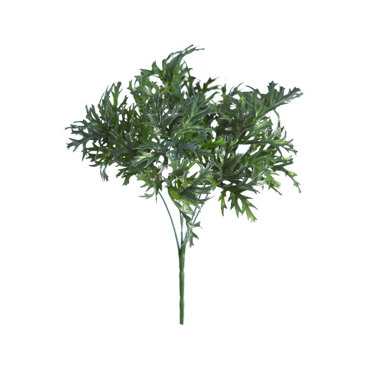 Planta artificial de rúcula con hojas recortadas y textura natural en tonos verdes intensos.